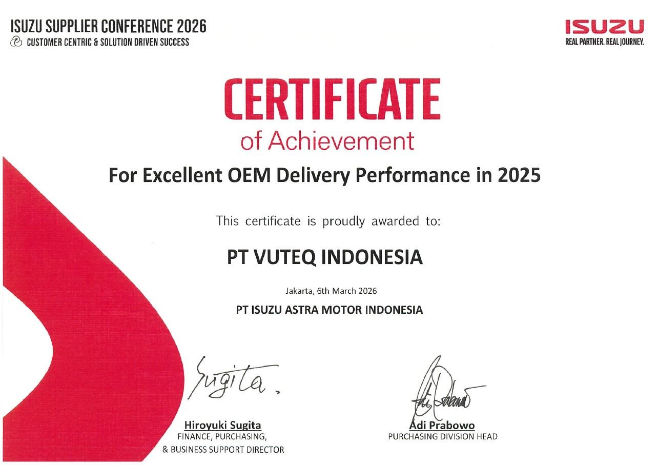 ビューテックインドネシアが いすゞインドネシア様より「Excellent OEM Delivery Performance in 2025」を受賞